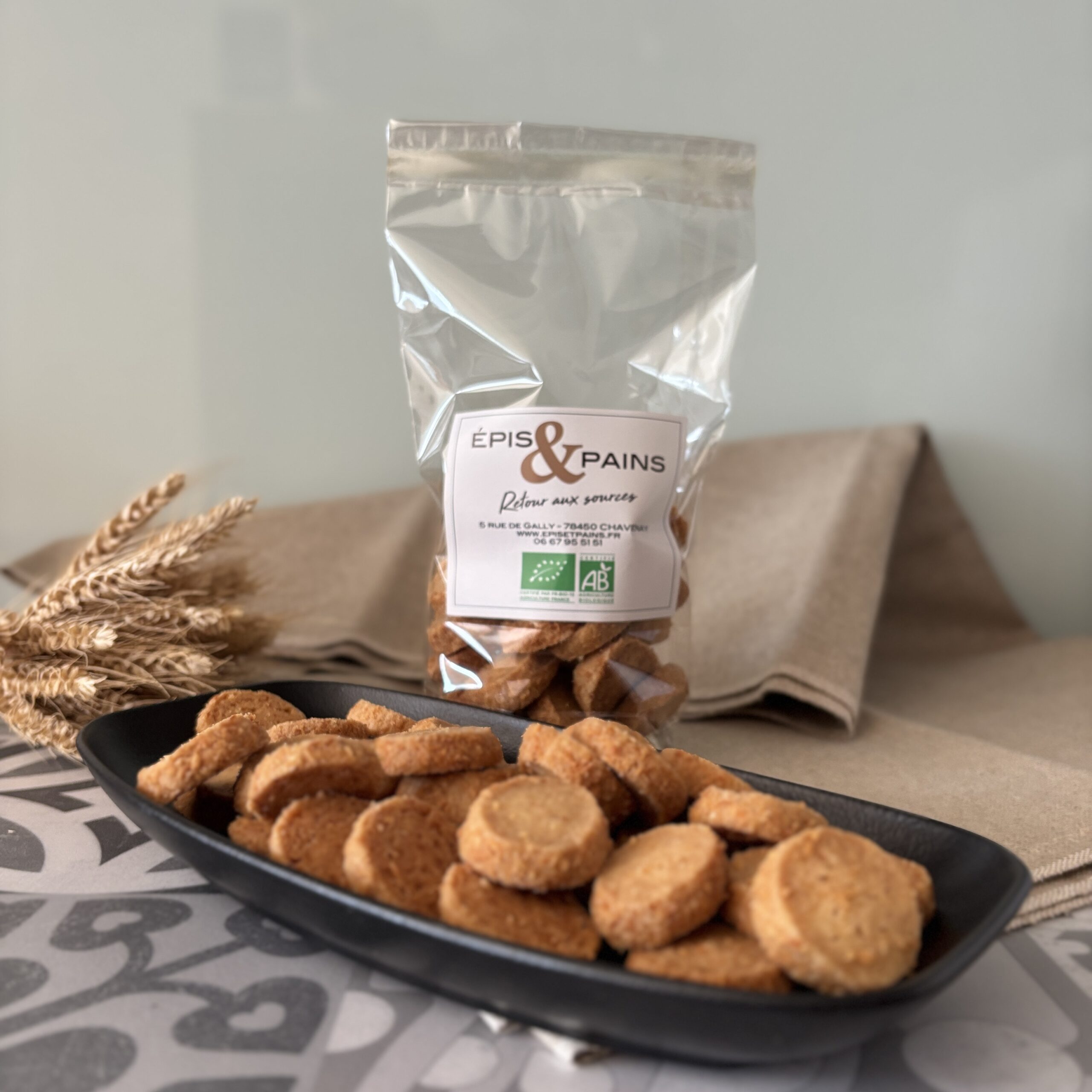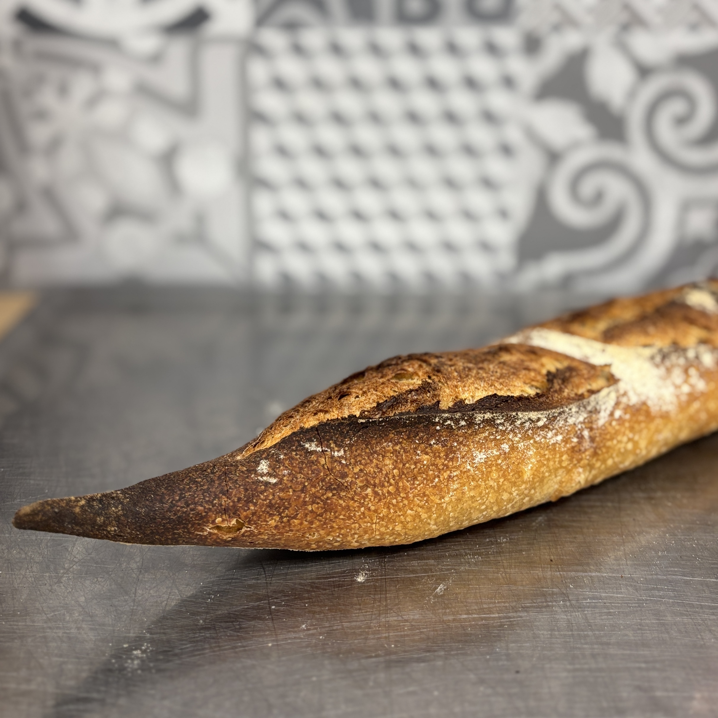 Des pains bio et locaux, à la farine maison semi-complète, cuits au feu de bois et panifiés au levain naturel, pour une saveur authentique, une meilleure digestibilité et une conservation de 3 à 5 jours, sans aucun additif.