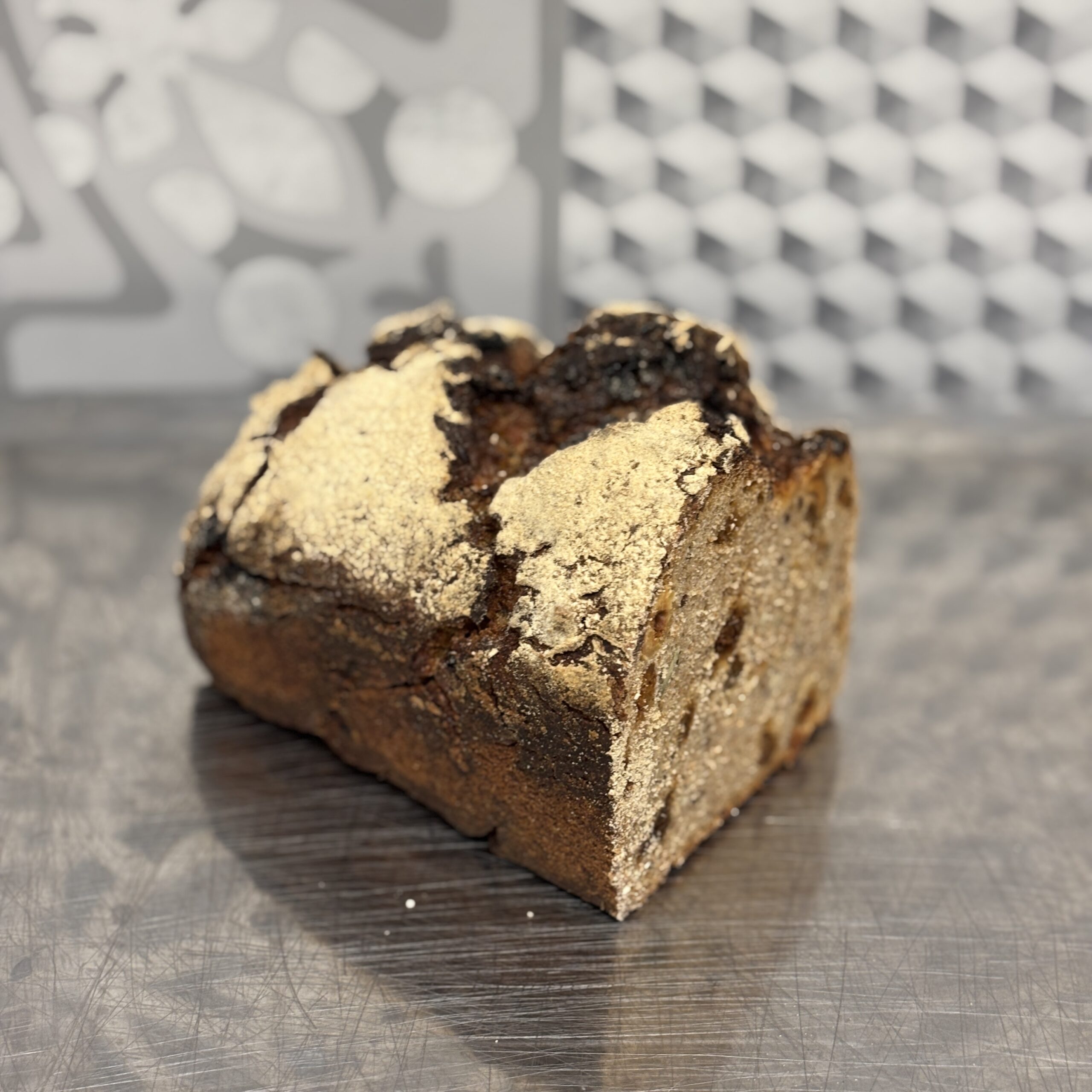 Pain au seigle, aux graines (tournesol, lin et courge), aux fruits secs (figues, abricots et noisettes), à la mélasse et au levain naturel
